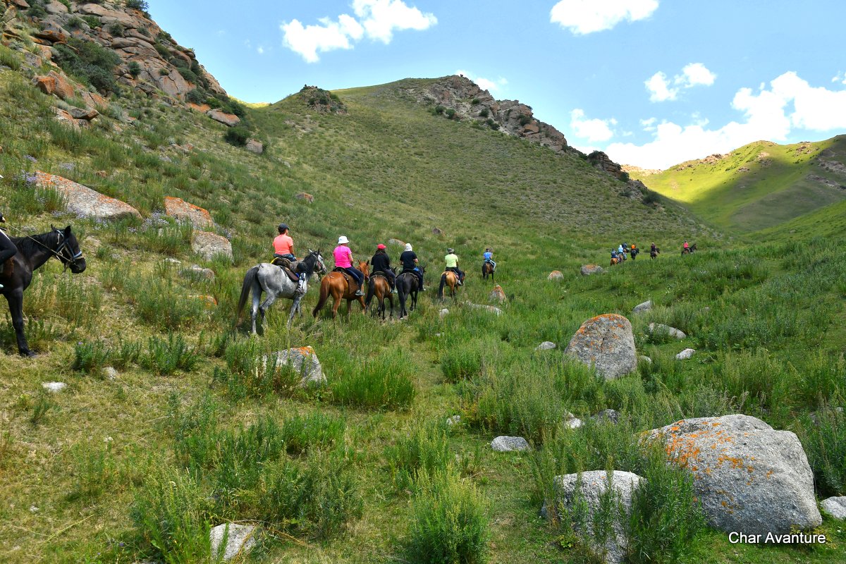 Pot nadaljujemo proti soteski Skazka, znani tudi kot Pravljični kanjon, kjer naredimo krajši treking. Nato nas pot vodi v mestece Karakol, kjer raziščemo mestne ulice in okolico. Obiščemo dolino Jeti Oguz, s slovitimi rdečimi skalami Sedmih bikov in znamenito Skalo počenega srca. Sprehodimo se do slapu in se pripravimo na večdnevni pohod.
